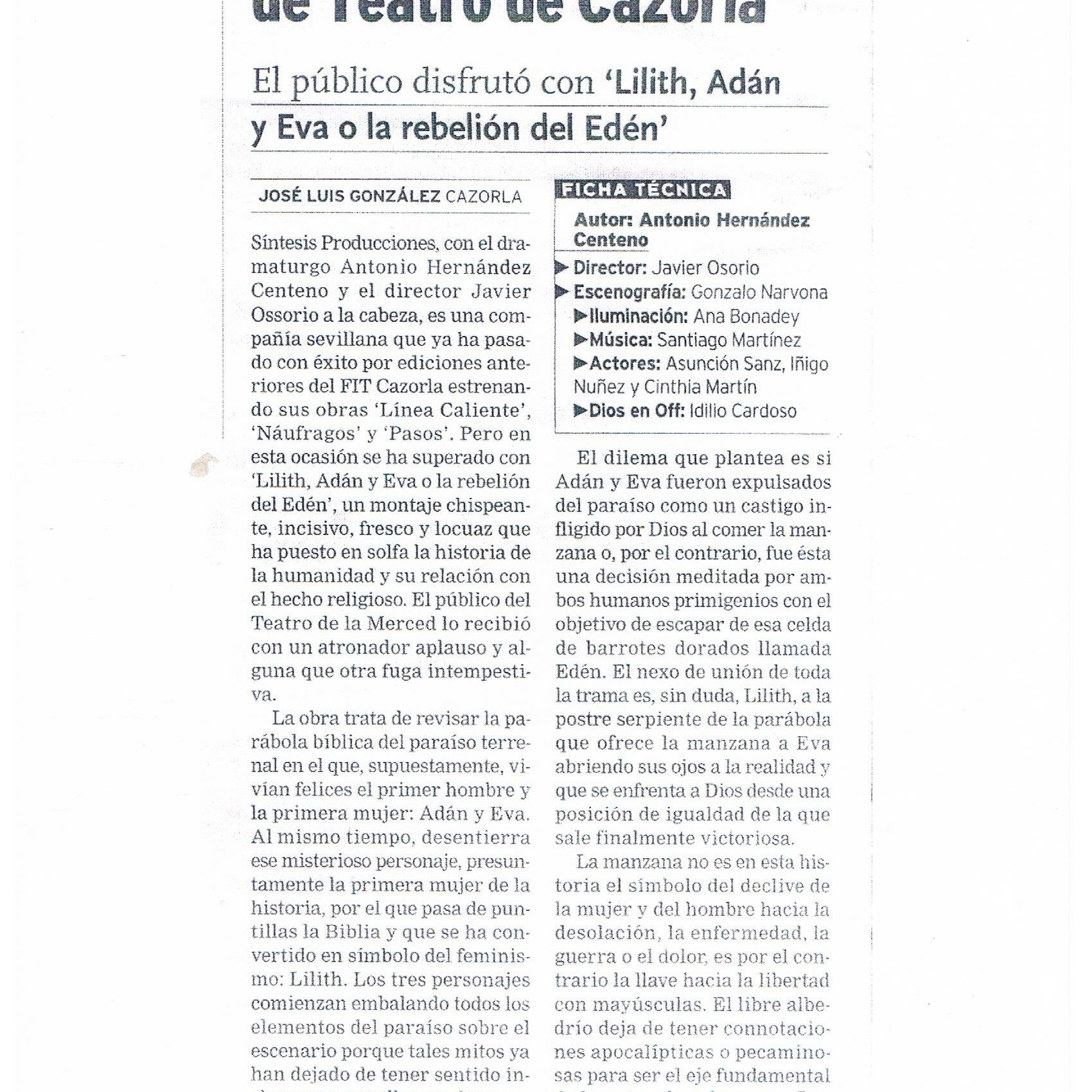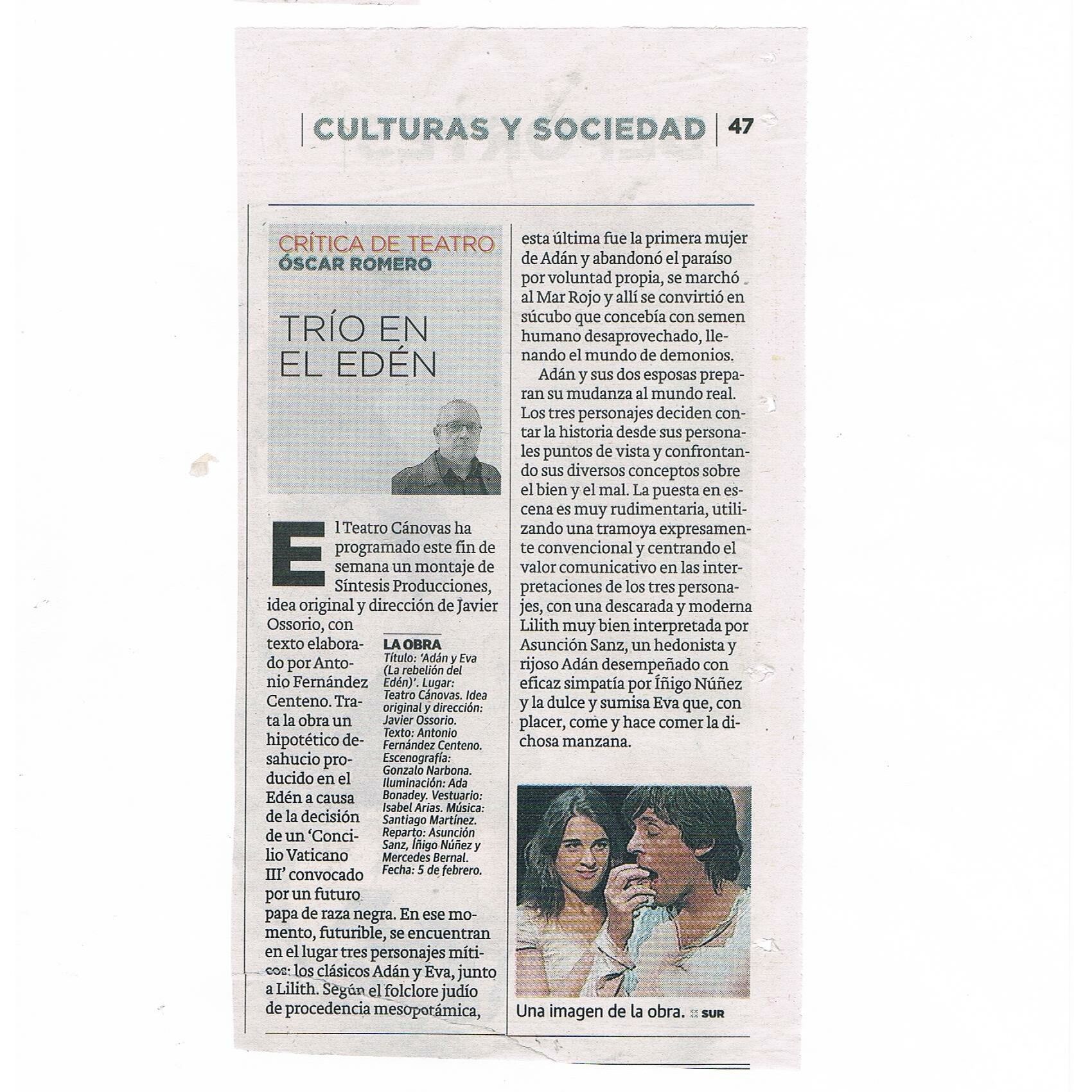 1991 – LAS DE CAÍN. Centro Andaluz de Teatro. Dirección Miguel Narros. (Regidor).